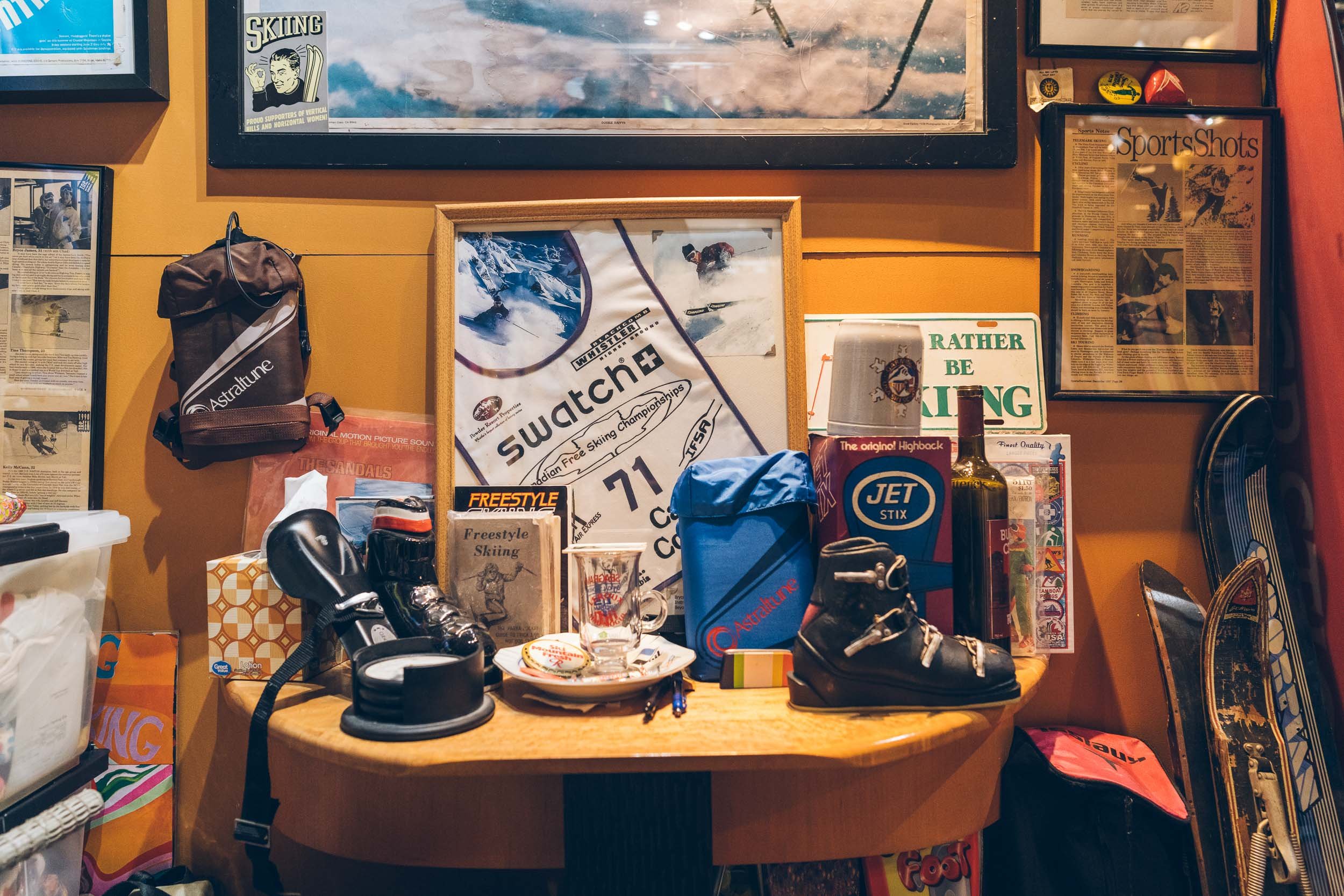 Shot for Powder Magazine, Retro Fool is an intimate portrait of Bryce James, home to one of the largest private collections of vintage ski gear in the world. Photographed in Washington State, the story moves through decades of skis, outerwear, and artifacts that trace the evolution of freestyle skiing and the culture that shaped it.