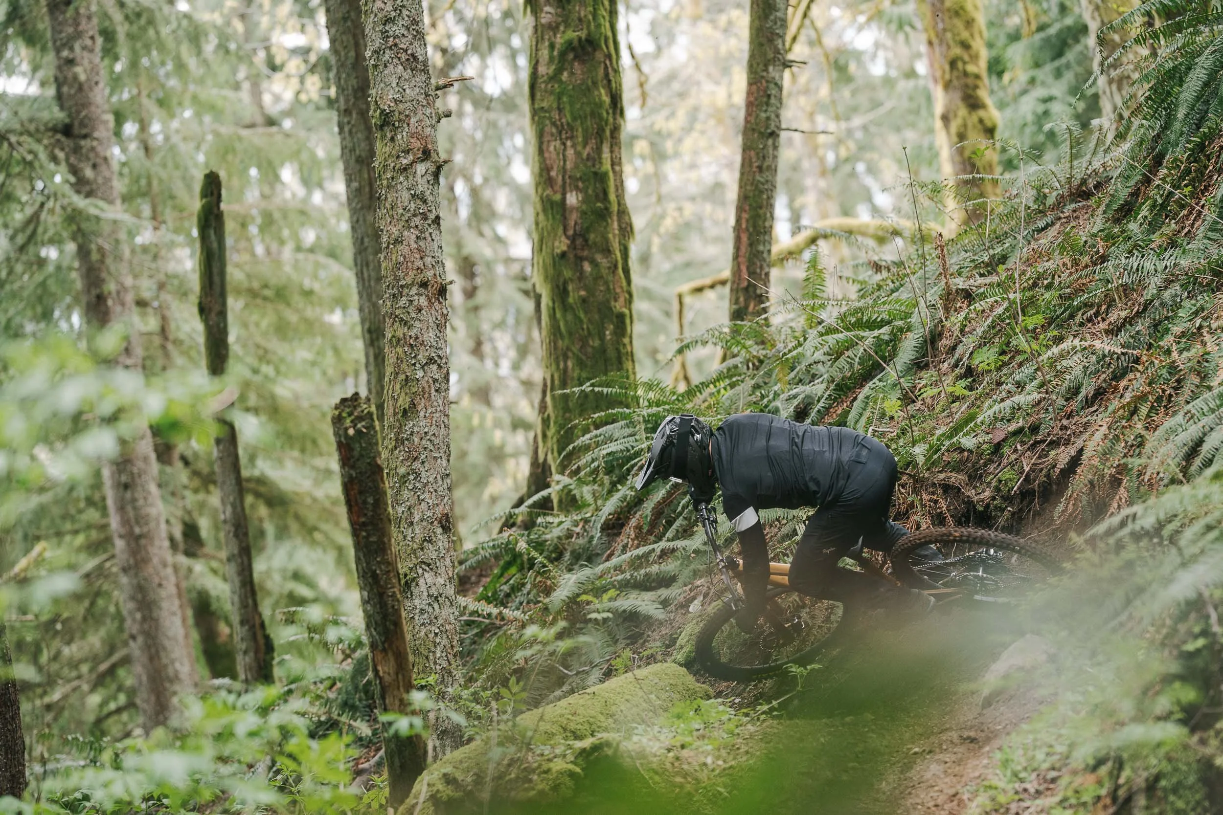 Shot in the forests surrounding Bellingham, Washington, this series documents Bryn Atkinson during the filming of Gold Standard. The project centers on Atkinson’s riding style, defined by precision cornering, speed, and control through the dense trails of the Pacific Northwest.