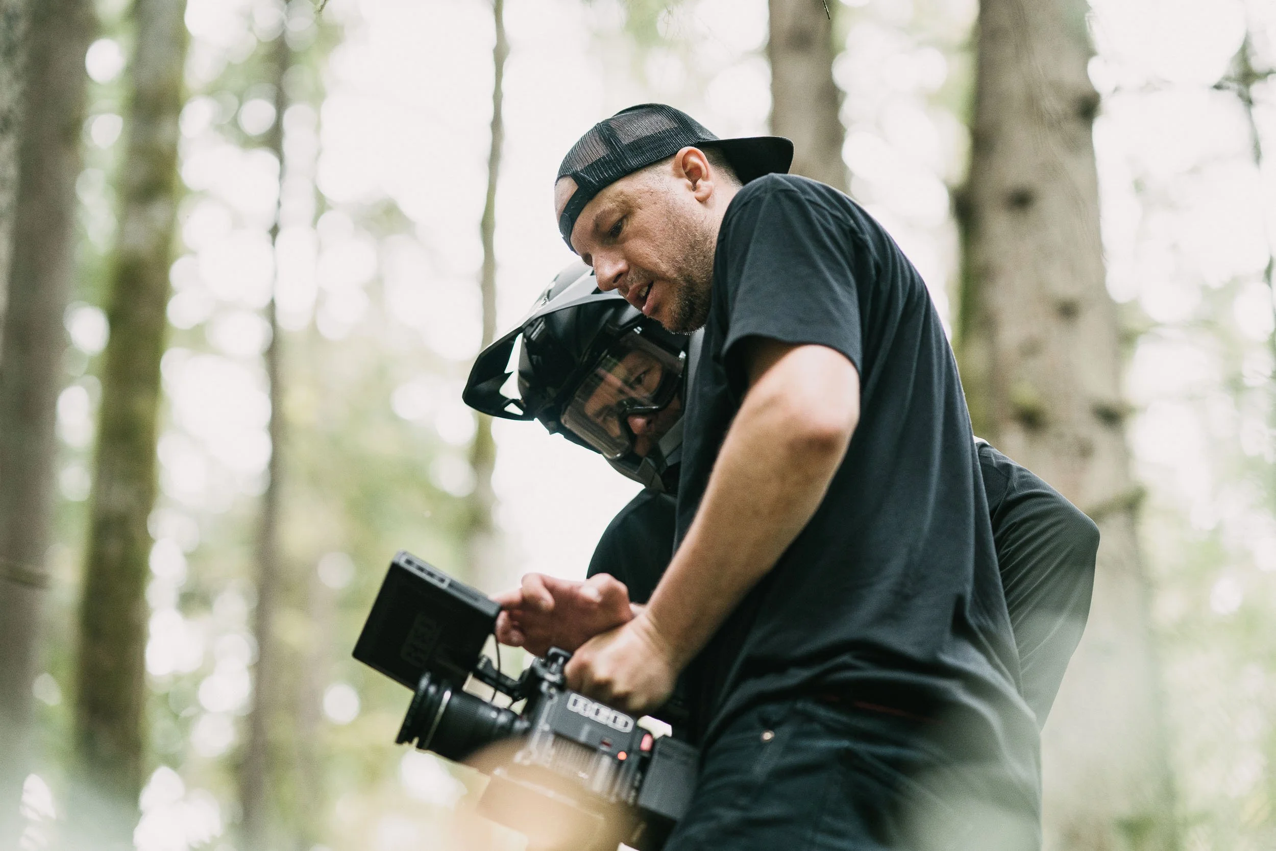Working alongside the film crew, the still images focus on the moments between movement and impact. Tires compress into loam, suspension loads through the turn, and posture shifts as the trail tightens.